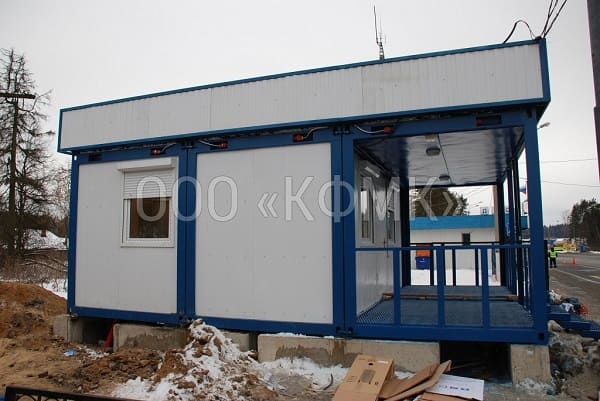 Модульное здание поста дорожно-патрульной службы на основе блок-контейнеров "Каскад". Выполнены работы по бурению скважины, обустройству и установке локальной канализации.