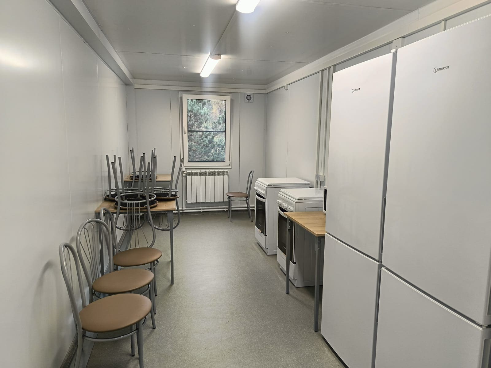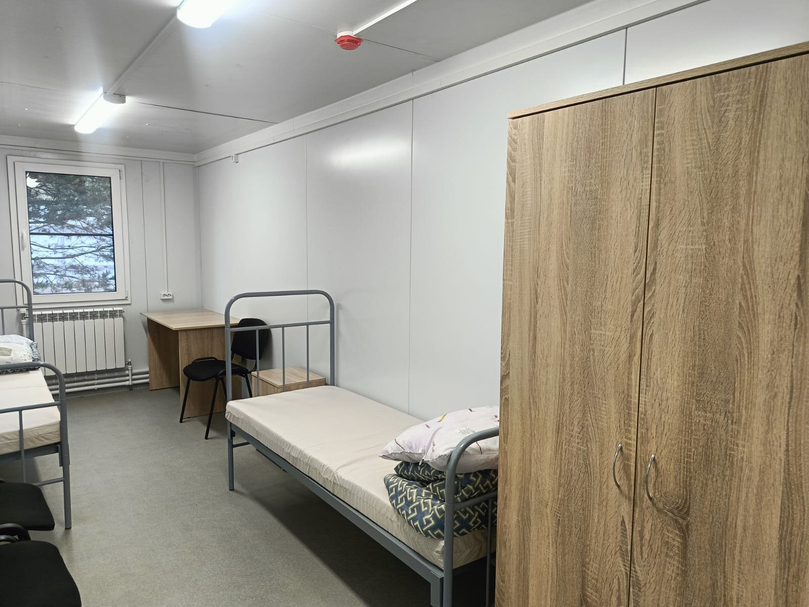 Здание комплектовалось системой водяного отопления с учетом ИТП, пожарной сигнализацией, СКУД, мебелью и бытовой техникой.